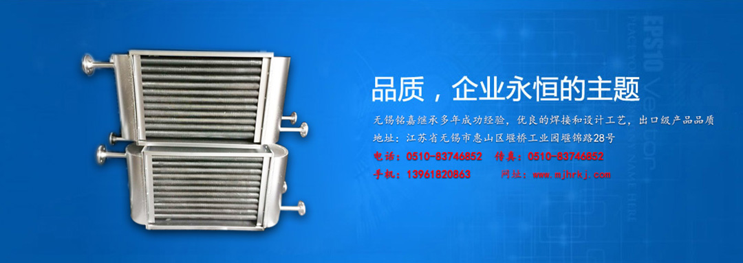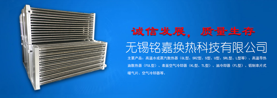無錫銘嘉換熱科技有限公司是生產(chǎn)散熱器的專業(yè)工廠。 產(chǎn)品有:高溫水或蒸汽散熱器高溫導熱油散熱器表面空氣冷卻器油冷卻器鋁制串片式暖氣片空氣冷卻器翅片管換熱器